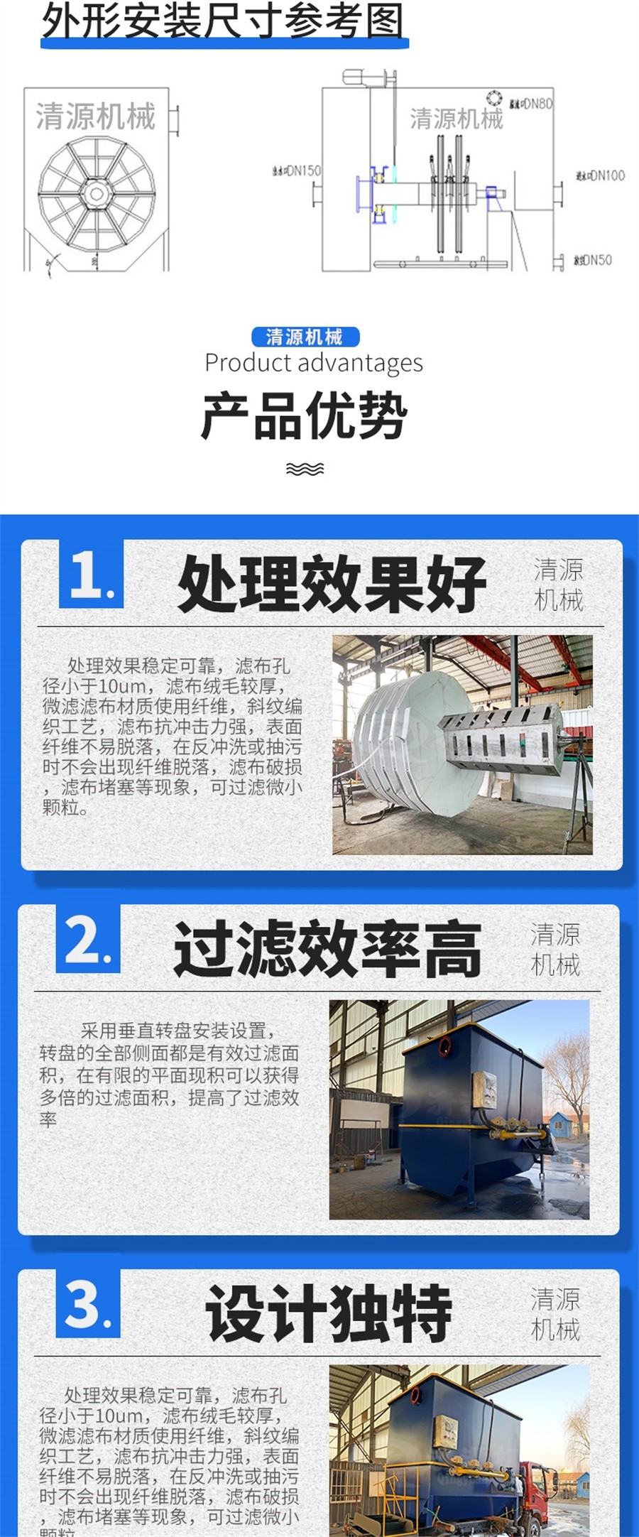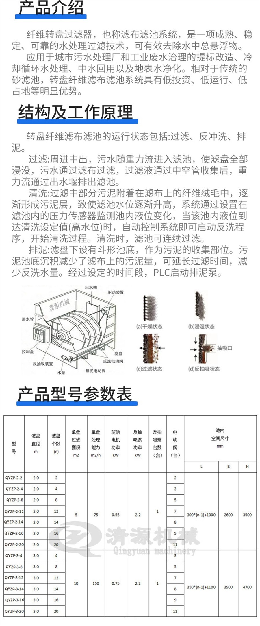 諸城清源機械科技有限公司纖維轉(zhuǎn)盤過濾器特點: